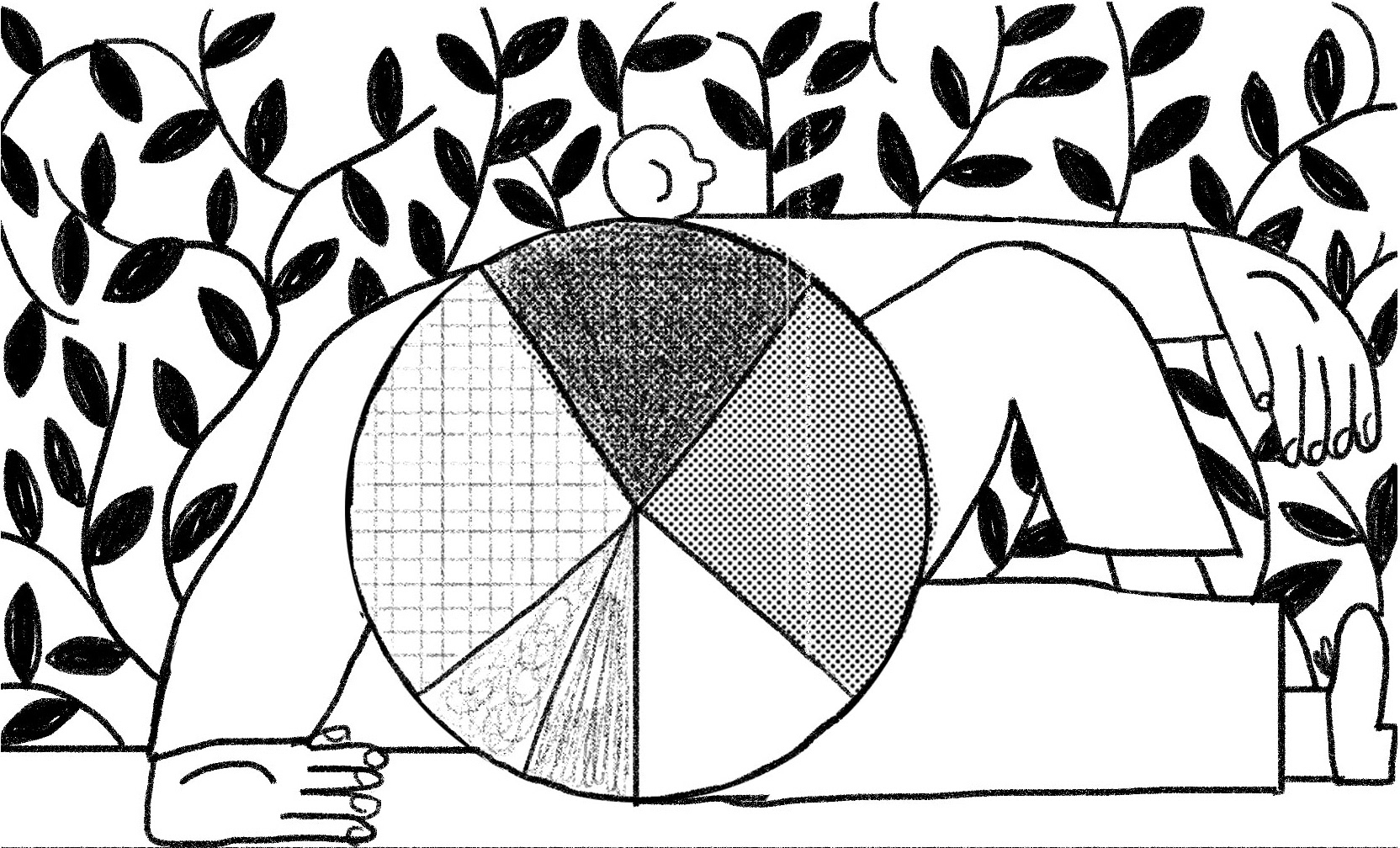 final Illustration and sketches for the article " Human capital and clients' portfolio" on Free Magazine